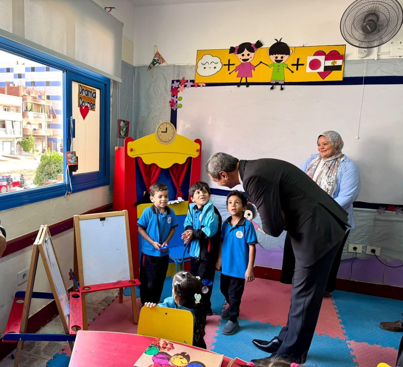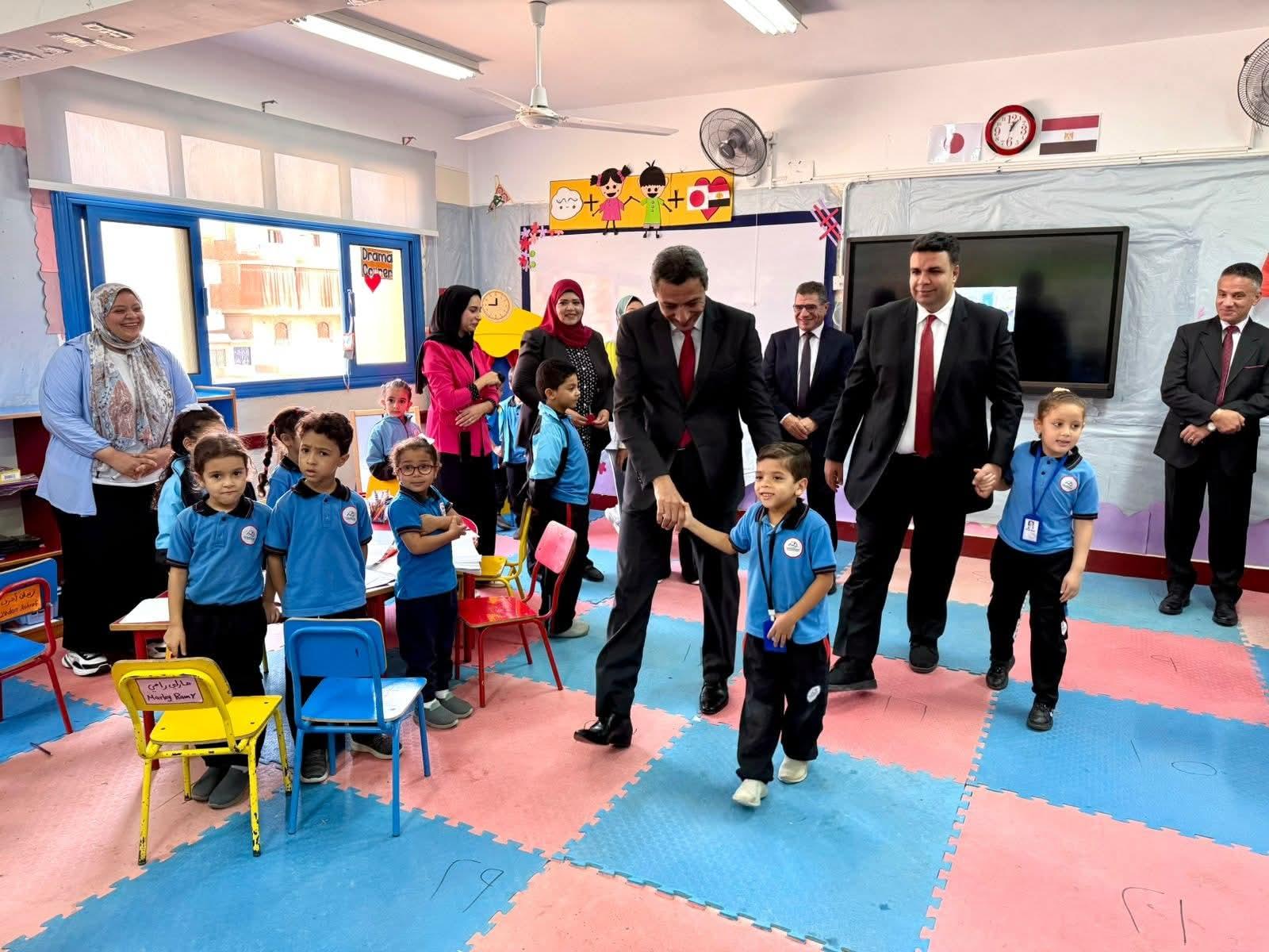 محافظ السويس يشيد بتجربة التعليم الياباني خلال زيارته للمدرسة اليابانية بمنطقة السلام 1 بحى عتاقة بمحافظة السويس