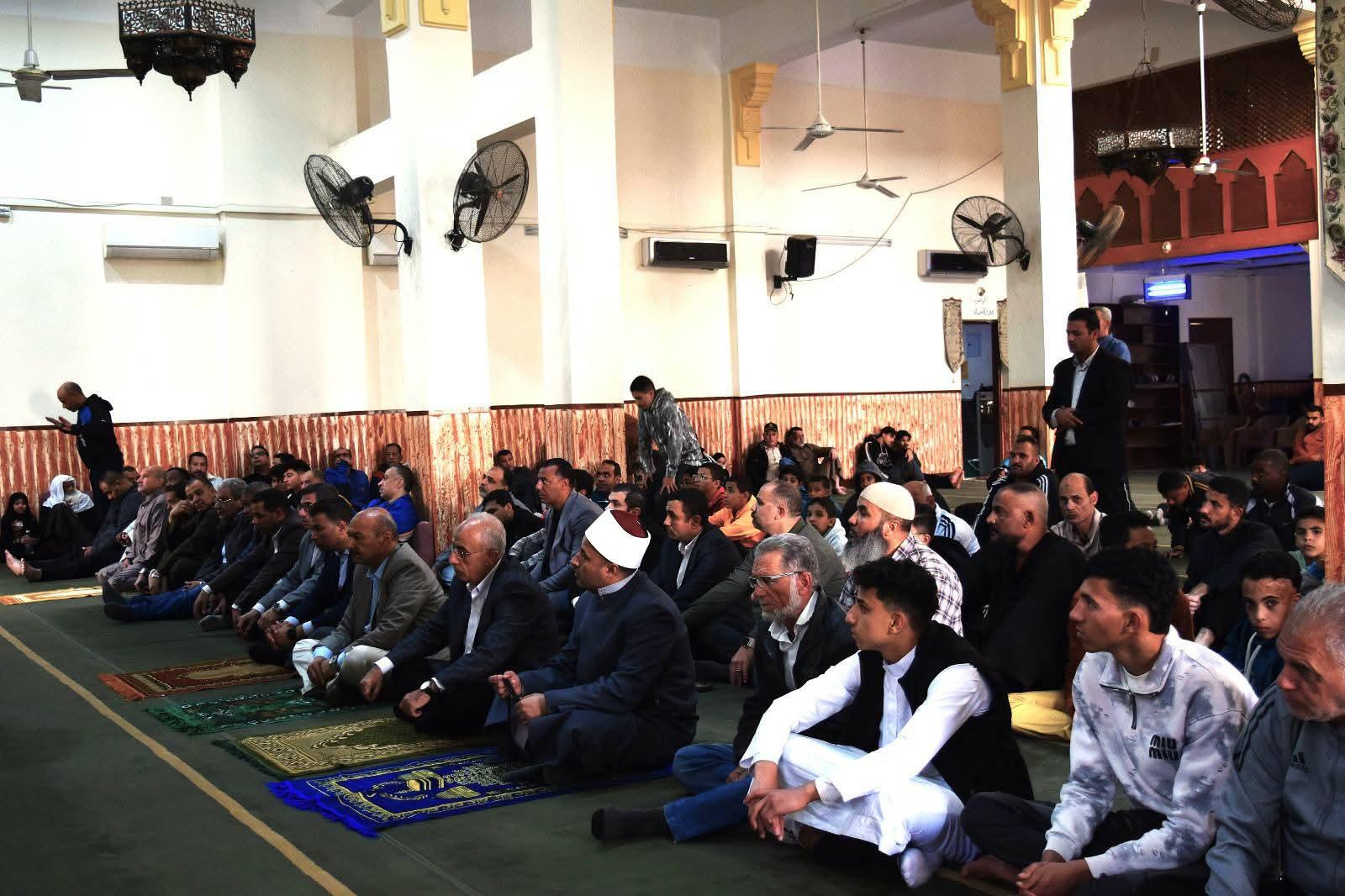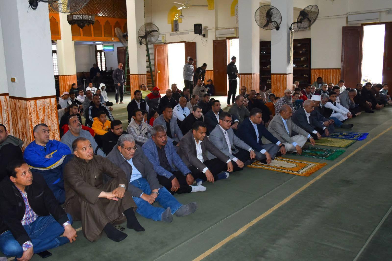 ادي اللواء أح / هاني رشاد علي ، محافظ السويس ، صلاة الجمعة بمسجد المختار وسط الأهالي بحي فيصل ، بحضور الدكتور محمد علام، نائب المحافظ،والأستاذ أحمد وزيري، السكرتير العام للمحافظة، واللواء عارف البركاوي السكرتير العام المساعد للمحافظة ، والشيخ أيمن خضر، مدير عام أوقاف السويس